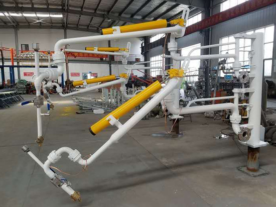 鶴管的安裝方法:發(fā)油臺(tái)與鶴管連接處配有相應(yīng)的標(biāo)準(zhǔn)法蘭,并保證基礎(chǔ)法蘭牢固可靠,法蘭盤(pán)距地面高度為2.1~2.2米,鶴管倒裝時(shí)法蘭盤(pán)距地面高度為2.7~2.8米。安裝過(guò)程中,每個(gè)法蘭面必須輕清潔干凈,有密封槽的必須用黃油將O形圈裝好后再連接在每個(gè)銷軸轉(zhuǎn)動(dòng)部分及彈簧平衡器安裝使用前必須涂潤(rùn)滑機(jī)油。<了解詳情>